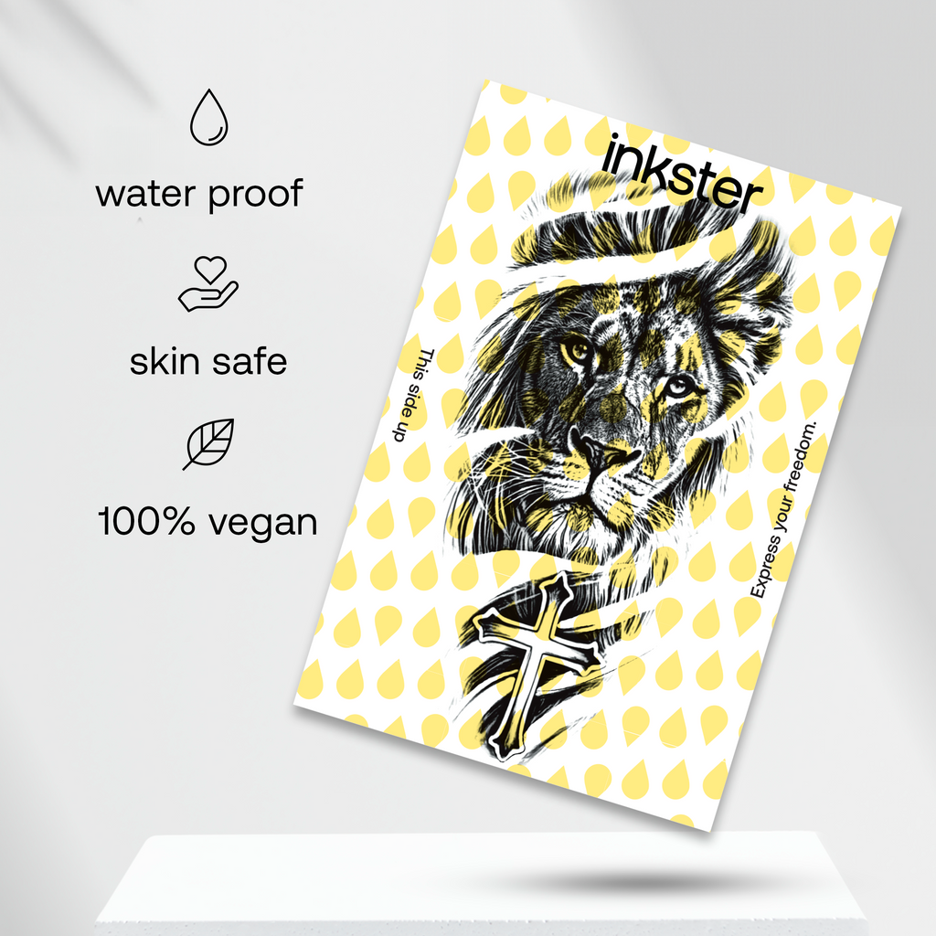 Für dein revolutionäres 2-Wochen-Tattoo von Inkster brauchst du nur das Tattoo, das du an deine Haustür geliefert bekommst. Eine Anleitung, wie man das Tattoo anbringt, befindet sich auf der Tattoo-Verpackung. Keine Sorge, es ist so einfach, nichts kann schief gehen!