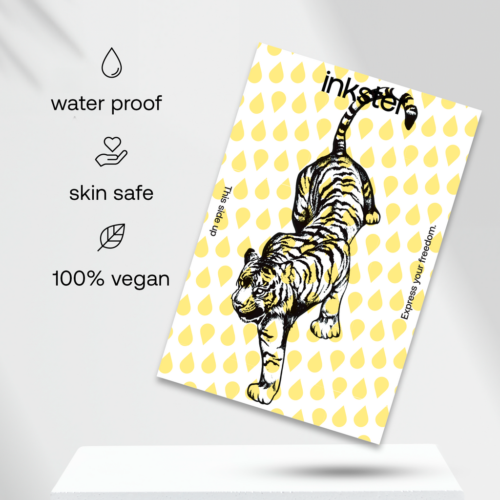 Für dein revolutionäres 2-Wochen-Tattoo von Inkster brauchst du nur das Tattoo, das du an deine Haustür geliefert bekommst. Eine Anleitung, wie man das Tattoo anbringt, befindet sich auf der Tattoo-Verpackung. Keine Sorge, es ist so einfach, nichts kann schief gehen!