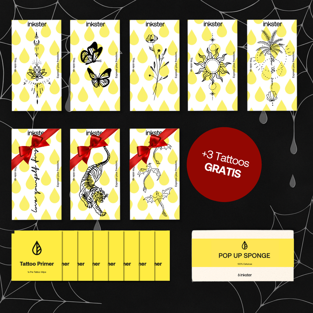 Unsere natürliche Inkster Tinte zieht in die erste Hautschicht ein und reagiert mit natürlichen Verbindungen in der Haut und der Luft, wodurch sie sich schwarz/blau färbt.