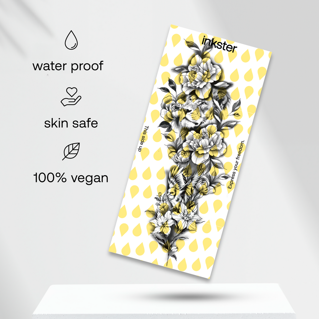Unsere natürliche Inkster Tinte zieht in die erste Hautschicht ein und reagiert mit natürlichen Verbindungen in der Haut und der Luft, wodurch sie sich schwarz/blau färbt.