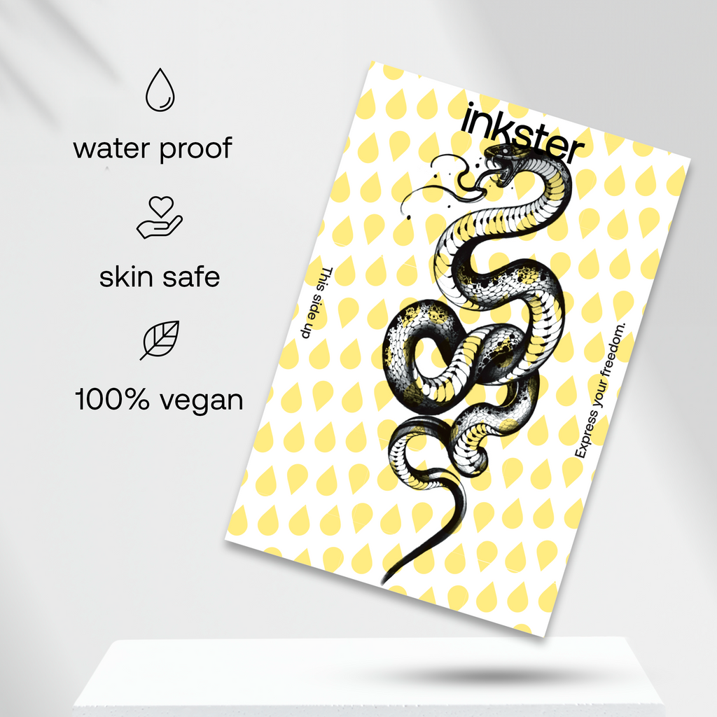 Für dein revolutionäres 2-Wochen-Tattoo von Inkster brauchst du nur das Tattoo, das du an deine Haustür geliefert bekommst. Eine Anleitung, wie man das Tattoo anbringt, befindet sich auf der Tattoo-Verpackung. Keine Sorge, es ist so einfach, nichts kann schief gehen!