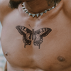 Unsere natürliche Inkster Tinte zieht in die erste Hautschicht ein und reagiert mit natürlichen Verbindungen in der Haut und der Luft, wodurch sie sich schwarz/blau färbt.