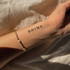 Das Shine Tattoo von Inkster ist mehr als nur ein temporäres Tattoo - es ist ein Ausdruck deines inneren Glanzes und deiner Strahlkraft. Inspiriert von der Idee, dass jeder Mensch das Potenzial hat, zu leuchten, erinnert dich dieses Tattoo daran, dein eigenes Licht zu entfachen und es in die Welt zu tragen. Die symbolische Bedeutung des Shine Tattoos liegt in seiner Fähigkeit, dich an deine innere Stärke zu erinnern und dir Selbstvertrauen zu schenken. Egal, ob du eine persönliche Herausforderung überwindest oder dich selbst daran erinnerst, dass du einzigartig und wertvoll bist, dieses Tattoo erinnert dich daran, dass du strahlen kannst, egal was passiert. Das Shine Tattoo kann an verschiedenen Stellen auf deinem Körper platziert werden, je nachdem, wie du es zur Geltung bringen möchtest. Für eine auffällige Wirkung empfehlen wir das Schulterblatt oder den oberen Rücken. Wenn du es lieber subtiler möchtest, ist der Fußrücken oder der Finger eine gute Wahl. Mit dem Shine Tattoo kannst du deinen persönlichen Stil auf vielfältige Weise ergänzen. An einem warmen Sommertag kannst du es mit einem luftigen Kleid kombinieren, um deinem Outfit einen Hauch von Glanz zu verleihen. Für Konzertbesuche kannst du es mit einem rockigen Look kombinieren, um deine rebellische Seite zum Ausdruck zu bringen. Und für Hochzeiten kannst du es mit einem eleganten Kleid kombinieren, um einen subtilen, aber dennoch auffälligen Akzent zu setzen. Dieses Tattoo eignet sich für all diejenigen, die ihre Individualität zum Ausdruck bringen möchten, ohne sich langfristig an ein Design binden zu wollen. Es ist perfekt für junge Menschen, die ihre Kreativität und Persönlichkeit ausdrücken möchten. Egal, ob du auf Festivals, Partys oder anderen Events unterwegs bist, das Shine Tattoo wird dich zum Strahlen bringen. Also, lass dein Licht leuchten und hol dir jetzt das Shine Tattoo von Inkster. Zeig der Welt, dass du einzigartig bist und dass du bereit bist, zu strahlen. Bestelle jetzt dein temporäres Shine Tattoo und entdecke die Magie des Selbstausdrucks.